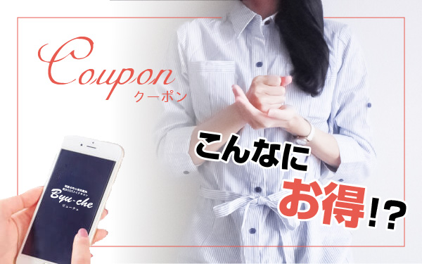 最大30%OFFのお得なクーポンをご用意しております。ご使用方法はWebからのご予約時に「クーポン使用」をお選びいただくだけ!手軽にByu-cheのコースを受けていただけます。詳細は以下のボタンからどうぞ。